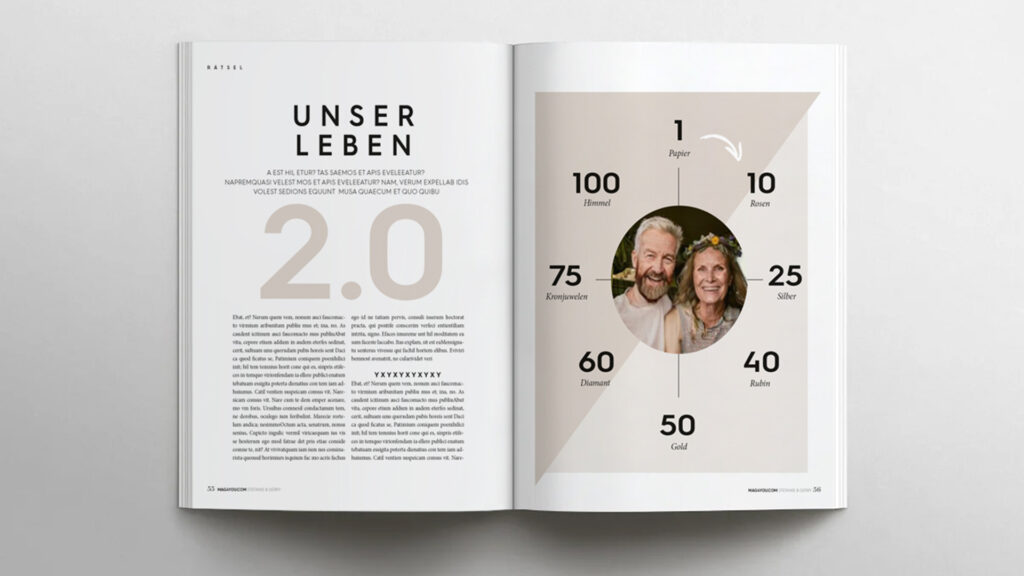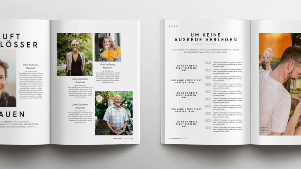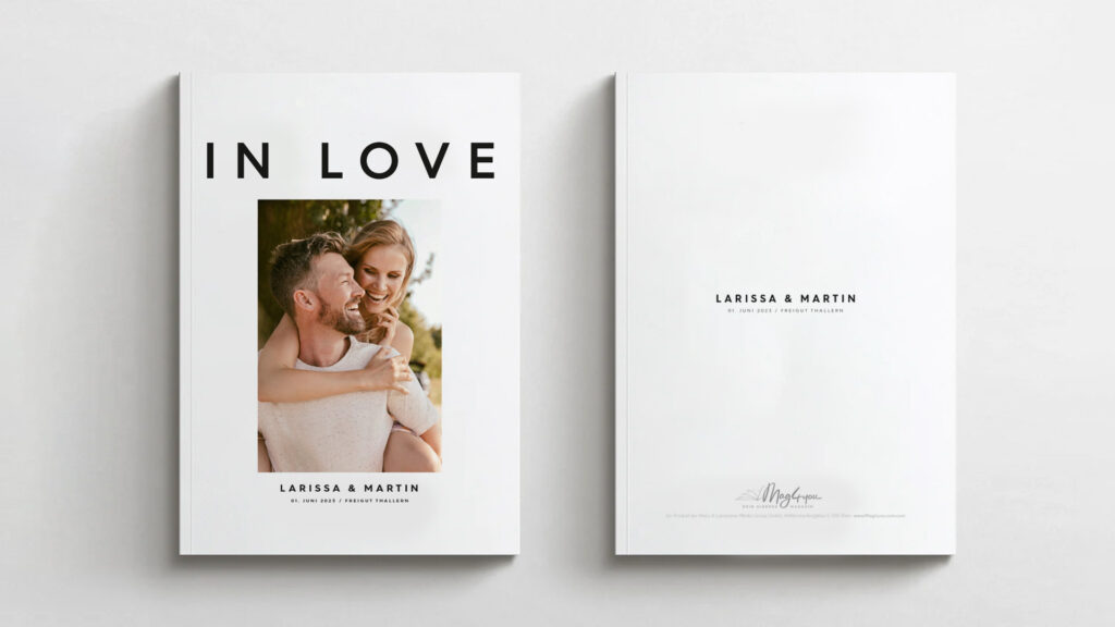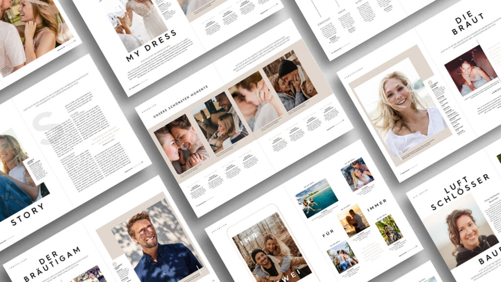 Mache die Hochzeit unvergesslich mit dem schönsten Geschenk: einem individuellen Traumhochzeits-Magazin. Es steckt voller Erinnerungen und lustiger Anekdoten.